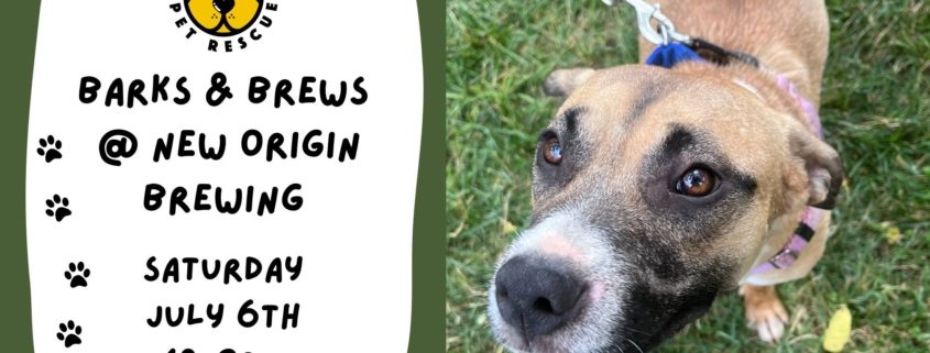 Need a new furry friend? Meet our adoptable pups at New Origin Brewing July 6th, from 12-3 pm. Fetch your friends, family, and furry companions and join us for an afternoon of barks and beers on the lawn. Can’t wait to see you there!