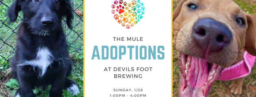Join us for a Pup Up Adoption Event at The Mule at Devils Foot Brewing on Sunday, Jan. 28th, from 1p-4p.
