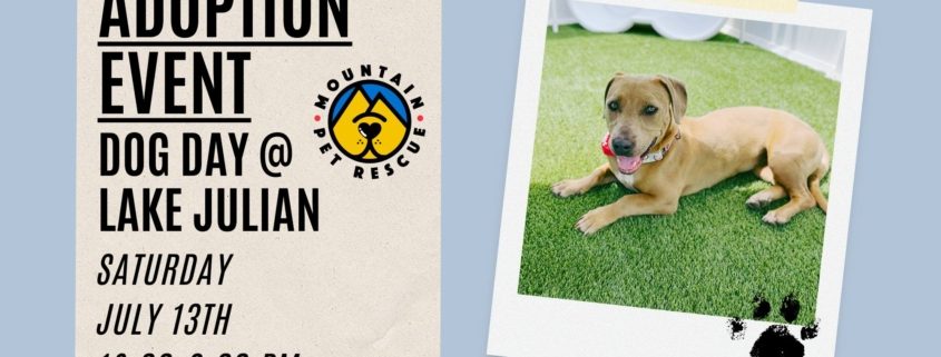 Ready to dive in to puppy parenthood? Join us July 13th from 12-3 pm at Lake Julian for a paws-itively fun time.