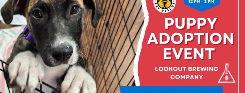 Join us for a pup-up adoption at Lookout Brewing on Saturday, 8/17, from 12-3pm. We’re loaded with puppies who are looking for their furever home! So, come on down, grab a beer, make some friends, and meet some pups!