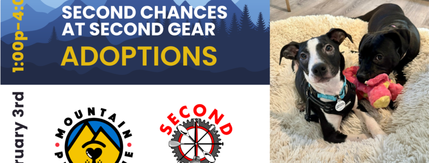 Explore the great outdoors with a new furry friend this winter! Join us at Second Gear on Sat. Feb. 3rd from 1:00 PM to 4:00 PM for a Dog Adoption Event. Join us in giving these pups a second chance at the raddest life!