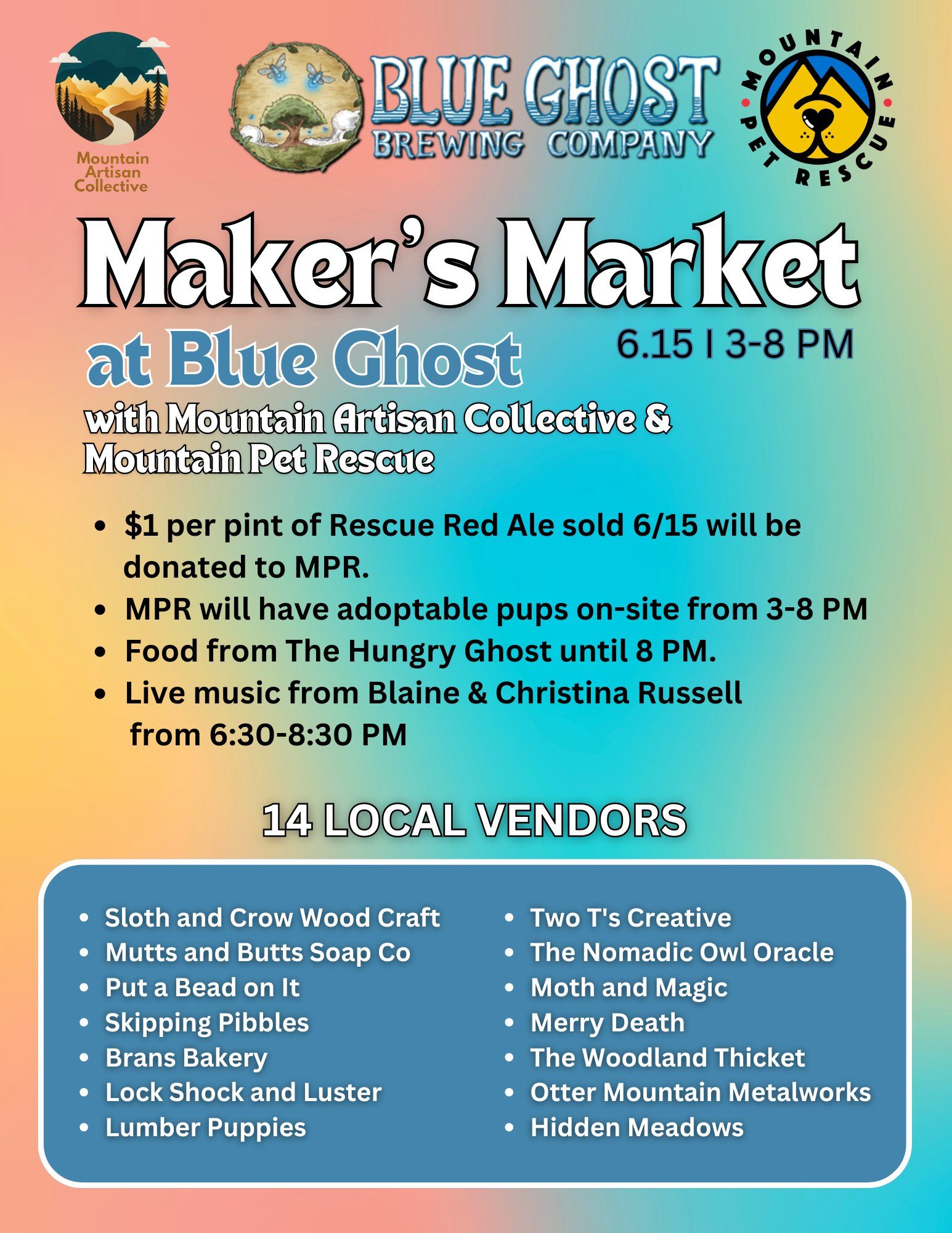 Blue Ghost Brewing Company 125 Underwood Rd., Fletcher, NCGet ready to a night of creative fun! We'll be set up at the Maker's Market from 3-8pm on 6/15 with adoptable pups that can't wait to meet you! There will be Food, Live Music, 14 vendors, and $1 of every pint of Rescue Red Ale sold gets donated directly back to our lifesaving efforts! […]