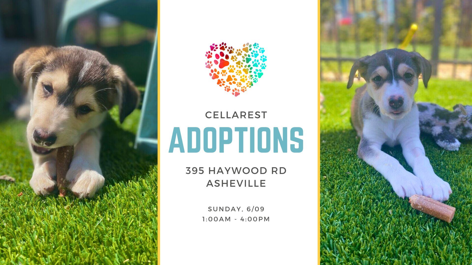 Come join us at Cellarest on Sunday, September 7th, from 1–4 pm for a puppy adoption event. Beat the summer heat with an ice cold drink and a super cool adoptable pup. Make sure to bring your friends, family, and your dogs! It will be a wagging good time. Catch you there!