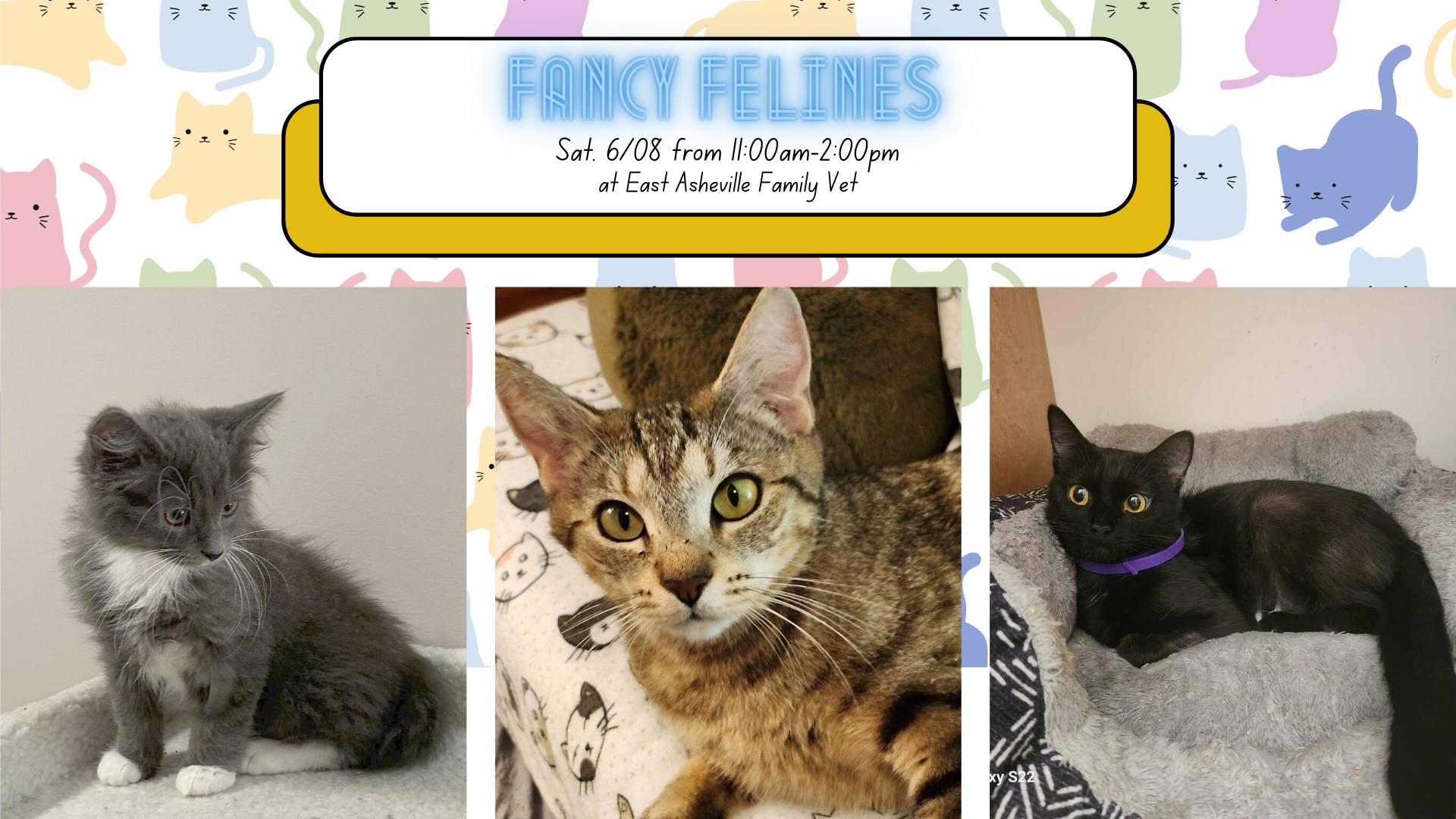 east asheville family vet 739 tunnel road, asheville, NC, United StatesCome meet Asheville's Finest Felines on Saturday 6/8 from 11-2pm at Easy Asheville Family Vet. All cats are spayed/neutered, current on age-appropriate vaccines, microchipped, FELV/FIV tested, dewormed and started on monthly flea preventative. Our kitties have all been in foster homes so be sure to go to MPRAVL.org to see all the available kitties and read bios […]