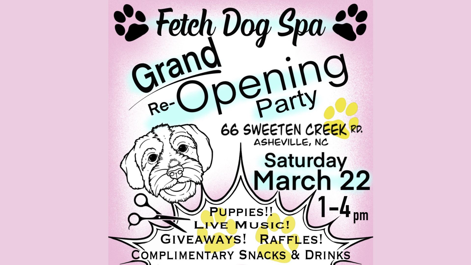 Fetch Dog Spa 66 Sweeten Creek Road, Asheville, NC, United StatesPlease join us March 22nd from 1:00-4:00 to celebrate the reopening of Fetch at its new location. After such a devastating loss to Helene, we are ready to celebrate new beginnings at their new space. Every guest will get a voucher for a free nail trim and an opportunity to win a $150 gift card! […]
