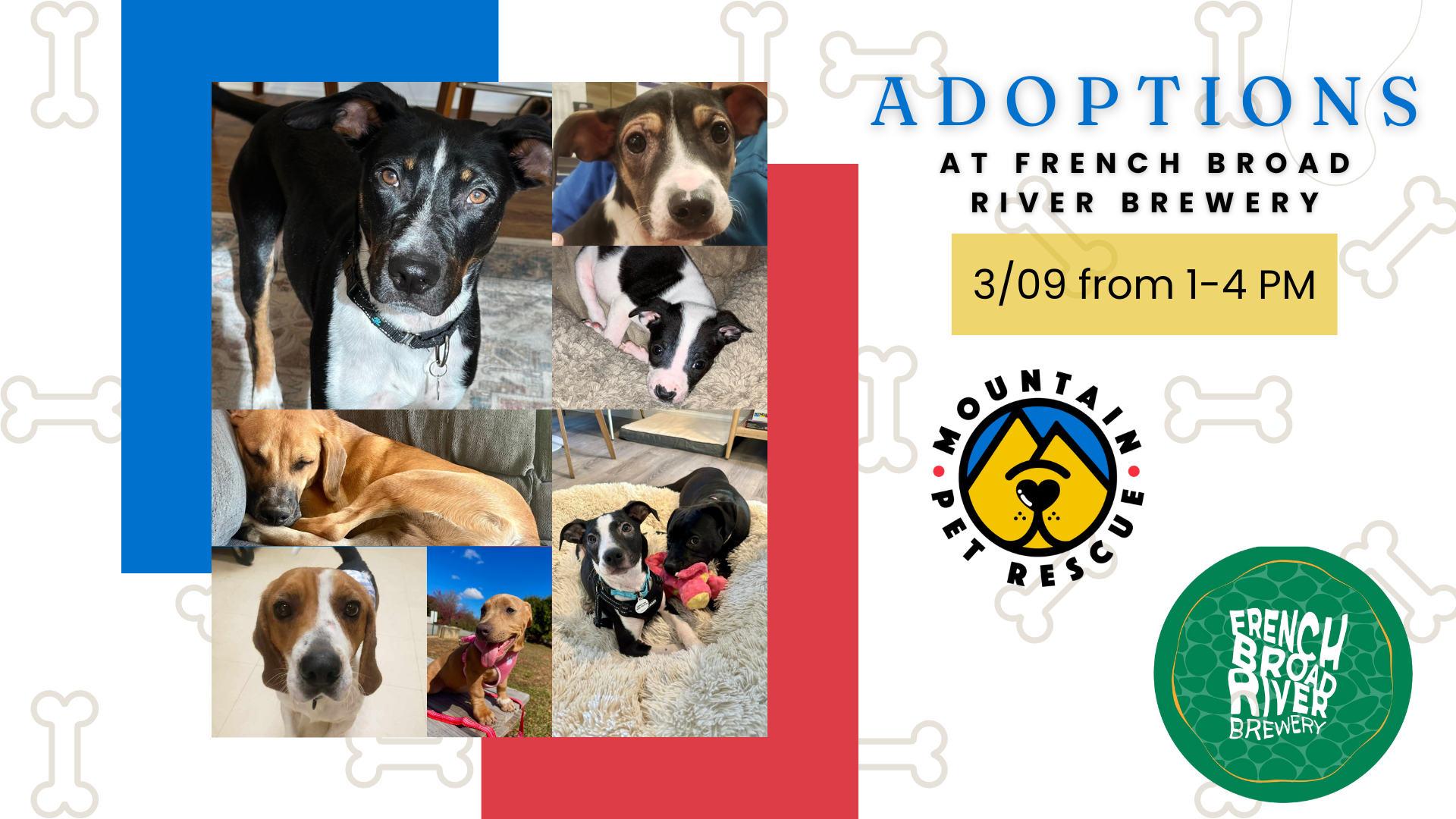french broad brewing 101 Fairview Rd D, Asheville, NC, United StatesJoin us at the taproom for the best combo ever: puppies & brews! Saturday March 9th, 1-4pm, There will be adoption puppies, Mountain Pet Rescue merch, delicious brews and more! Come spend your Saturday with us and find a new best friend to spend your life with!