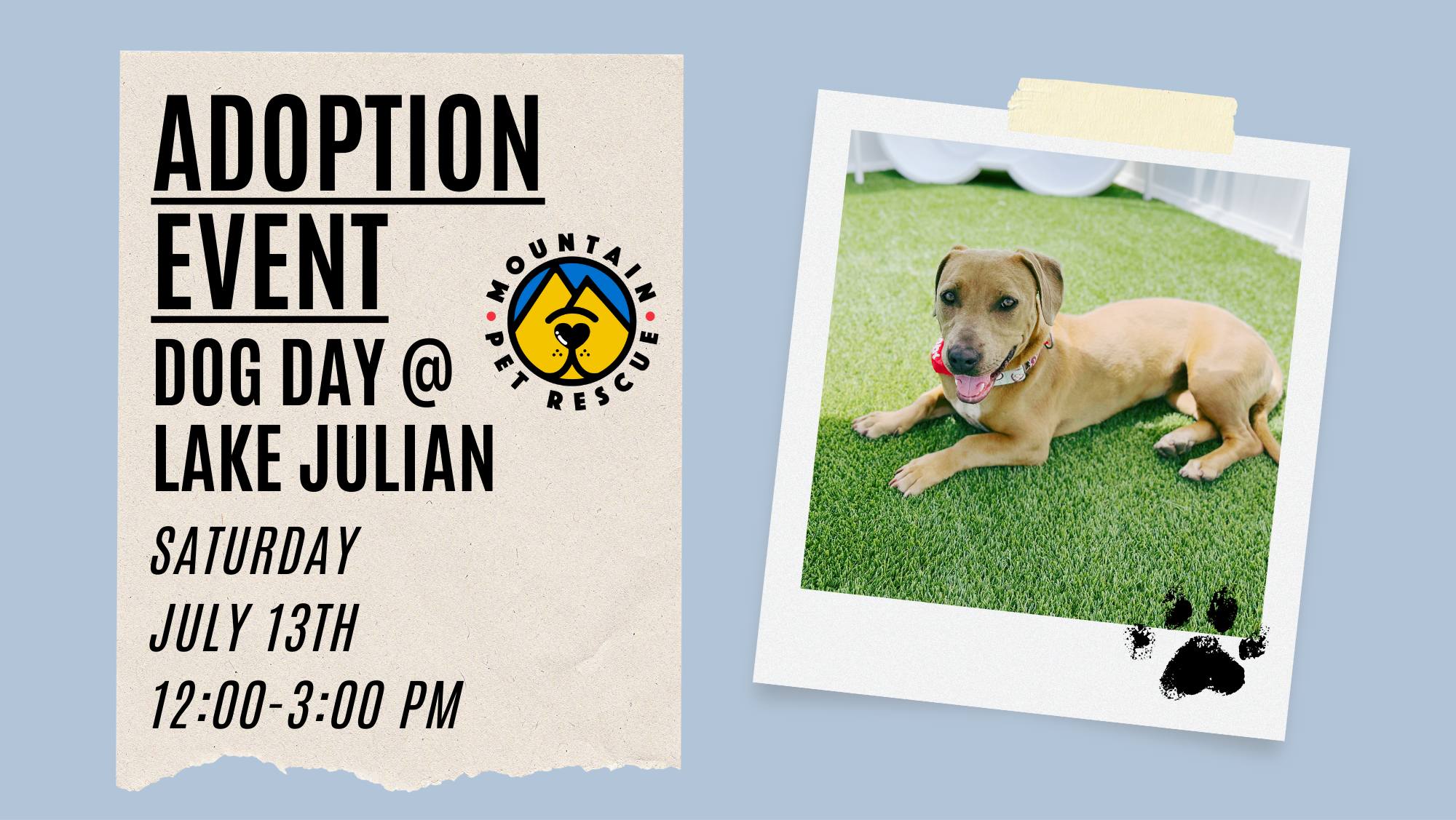 Ready to dive in to puppy parenthood? Join us July 13th from 12-3 pm at Lake Julian for a paws-itively fun time.If you love the outdoors and want some company on the trails or in the lake, you'll want to meet these lively pups!