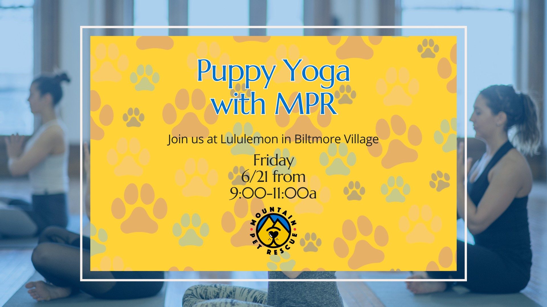 lululemon 1 kitchin place, asheville, NC, United StatesRise and shine early birds! The early bird catches the best stretches and ample amounts of puppy kisses! Meet us for Puppy Yoga at Lululemon in Biltmore Park on June 21st from 9-11am. Of course, all the cuties we bring will be ready for adoption! Your new workout partner is waiting for you.