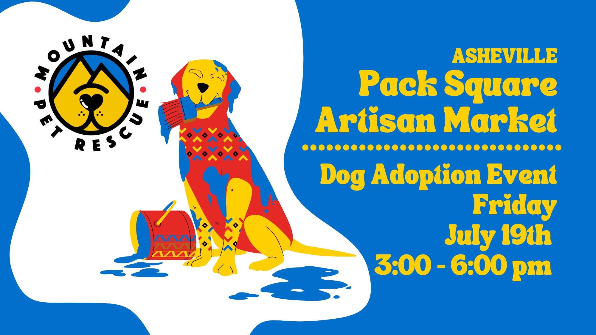 Calling all paw-casso lovers! If you're a lover of cute pups and local art, don’t brush off the chance to attend The Pack Square Artisan Market! Join us Friday, July 19th, from 3-6 pm. We’ll have adoptable pups waiting to find their muse!