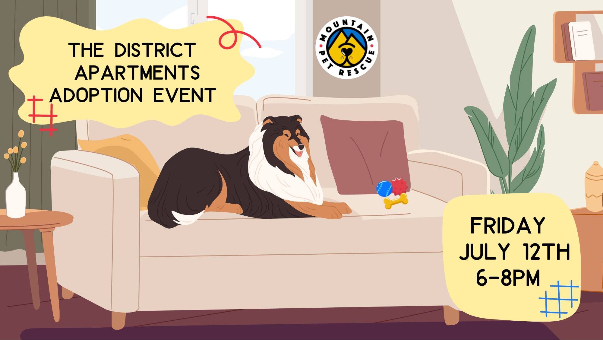 Join us on Sunday, 7/20 from 6:00-8:00 pm at the District Apartments. We'll have adoptable pups and MPR merch, so bark on by to meet your next  best friend!