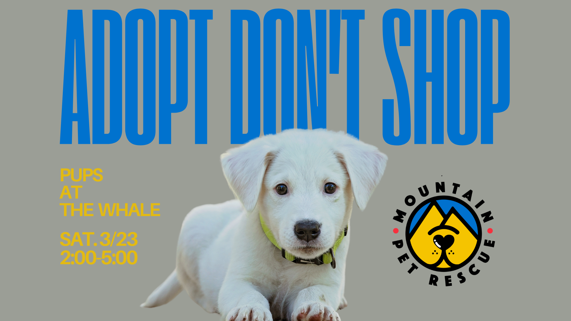 Join us for a Pup Up Adoption Event at The Whale in West Asheville on Saturday, 3/23, from 2-5pm. Come meet our furry friends and snag some pawsome MPR merch! It’s sure to be a whale of a good time!